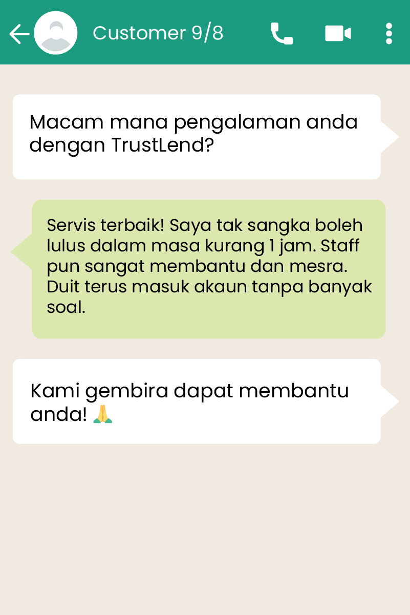 Kelulusan boleh diperoleh seawal 15 minit hingga 1 jam, bergantung kepada dokumen dan maklumat yang diberikan.